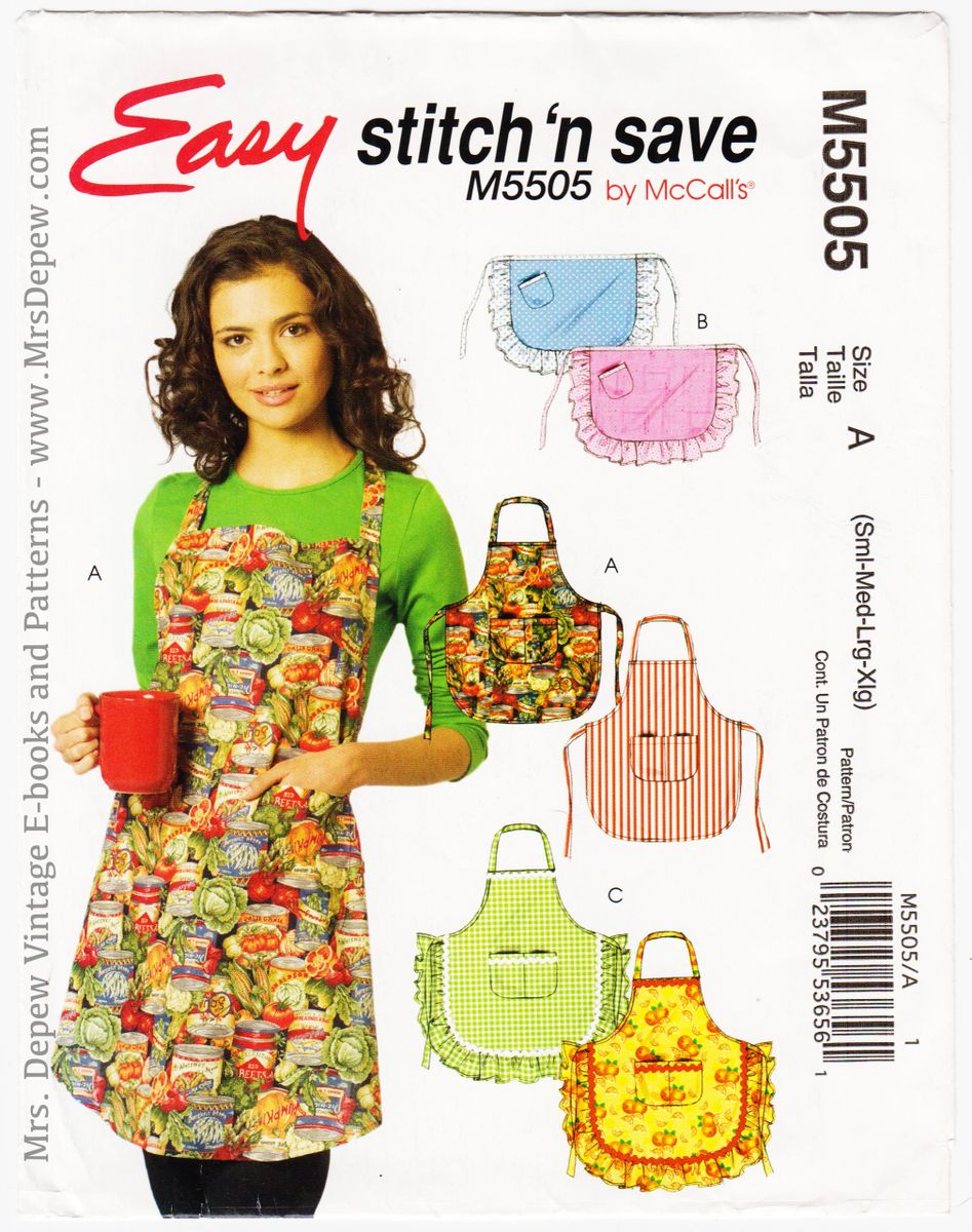 New Unused Sewing Pattern Pattern Mccall Stitch And Save M5505 Misses Aprons Sizes S M L Xl
